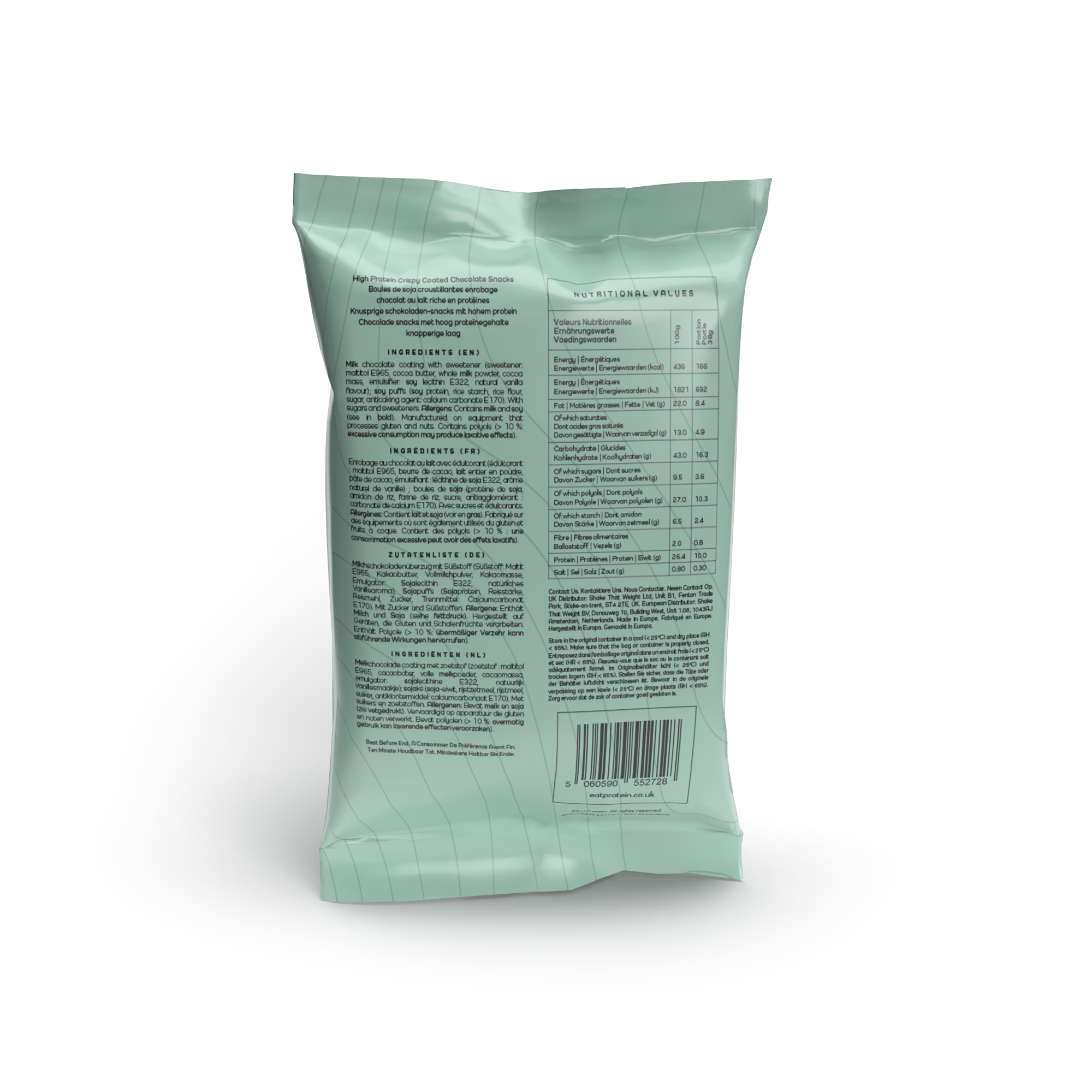 Light, crispy soy puffs coated in smooth milk chocolate — like your favourite malt treat, but with 10g protein and just 166 calories per serving. Gluten free, vegetarian and seriously moreish.